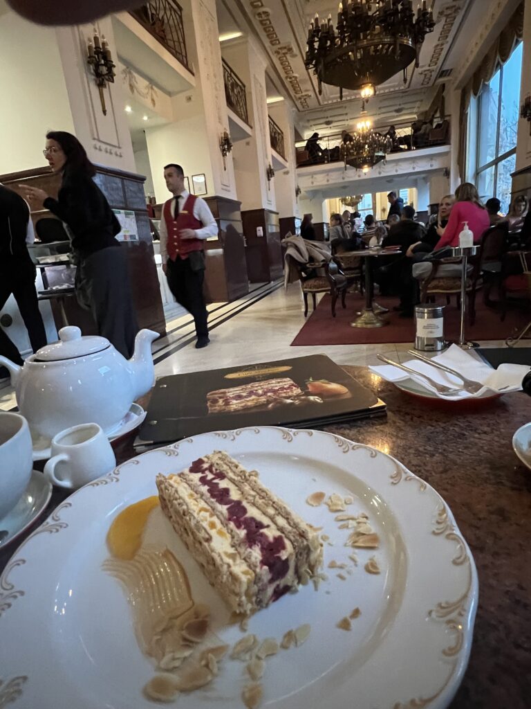 A na deser koniecznie odwiedźcie kawiarnię w Hotelu Moskwa, gdzie możecie spróbować legendarny tort Moskwa – słodki, kremowy z ananasem i wiśniami, prawdziwy smak Belgradu.