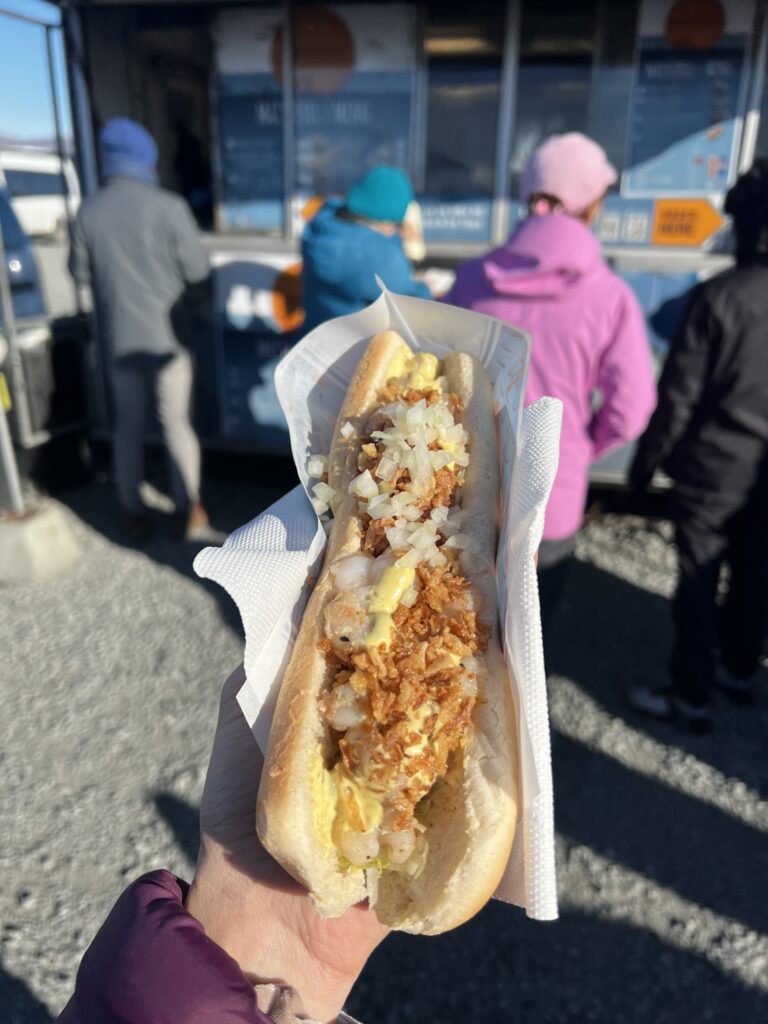 W budkach przy głównym parkingu przy lagunie można kupić proste, ciepłe posiłki typu fast food, takie jak hot dogi, kanapki czy zupy, które świetnie sprawdzą się podczas krótkiego postoju w trasie. Dostępne są też napoje, kawa i słodkie przekąski, a niektóre budki oferują lokalne przysmaki, np. islandzkie ciasta i przekąski rybne. To wygodne rozwiązanie, jeśli planujesz dłuższy spacer wzdłuż laguny lub wizytę na Diamentowej Plaży i nie chcesz zabierać ze sobą własnego jedzenia.