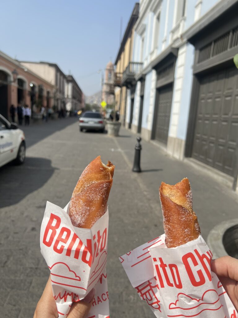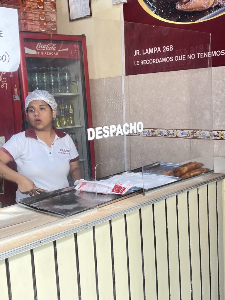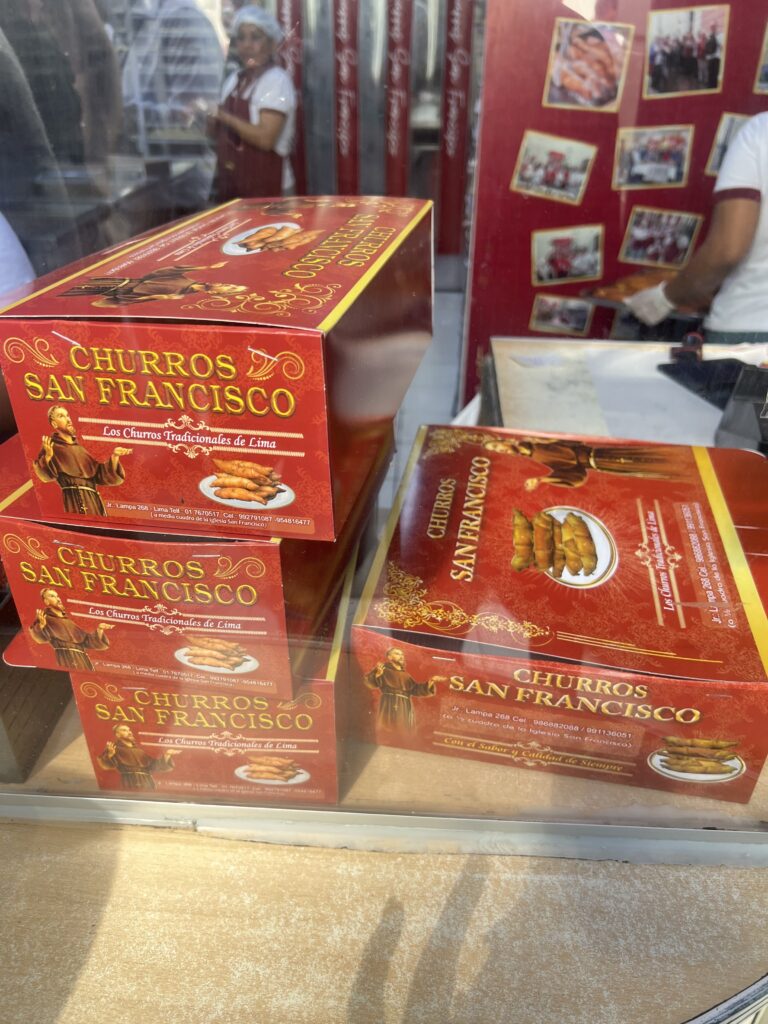 W trakcie spaceru po centrum trafiliśmy też na churrosy z CHURROS SAN FRANCISCO S.A.C – niewielkiego, lokalnego punktu, gdzie wszystko robione jest na bieżąco i sprzedawane głównie „na wynos”. Ustawiała się tam ogromna kolejka, więc chciałam skorzystać. To w Peru bardzo popularna przekąska uliczna, ale w tej części świata wygląda trochę inaczej niż w Hiszpania.