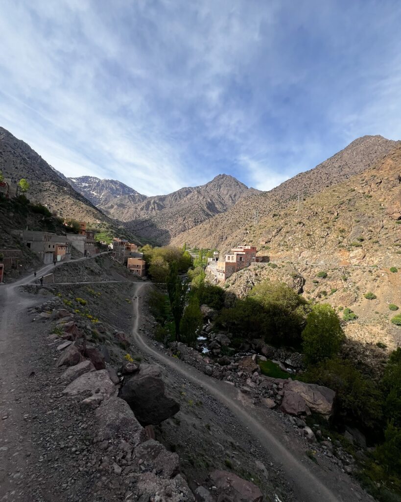 1️⃣ Start: Imlil (ok. 1740 m n.p.m.) → Schronisko (ok. 3200 m)