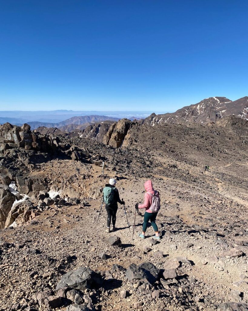 Zejście ze szczytu do schroniska trwa 2–4 godziny. Po krótkim odpoczynku i posiłku – dalsze zejście do Imlil, kolejne 10–12 km (ok. 1500 m w dół).