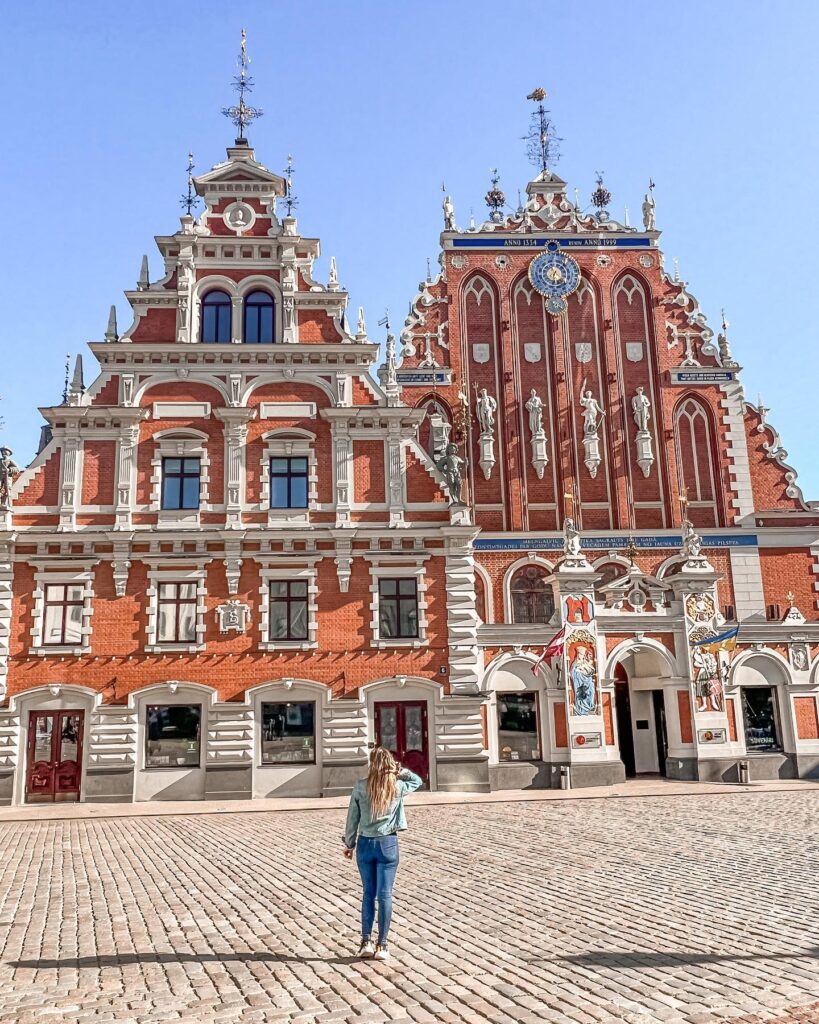 Tak bardzo nie mogłam się doczekać Rygi, że do zwiedzania byłam gotowa już około 7, co jest rzadkością 😀 . Pierwsze kroki skierowaliśmy prosto do XIV-wiecznego Domu Bractwa Czarnogłowych. Te czerwone kamienice to prawdziwy symbol miasta. Pierwotnie były siedzibą stowarzyszenia bogatych kupców. Ale co mnie zaskoczyło — są całkiem malutkie i łatwo je przeoczyć, bo świetnie wtapiają się w architekturę placu. Za to z bliska ich zdobienia są przepiękne. Także obowiązkowy punkt programu zaliczony, więc mogłam wyruszyć dalej na spokojne odkrywanie miasta.