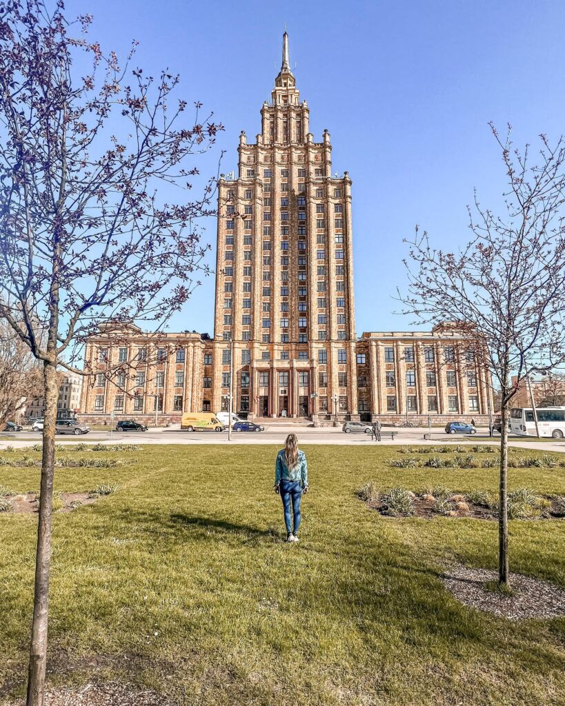 Kilka minut spacerem od hal znajduje się Akademia Nauk Łotwy, zwana siostrą naszego PKiN. Oba budynki powstały w latach 50. XX wieku i mają wiele wspólnych cech.