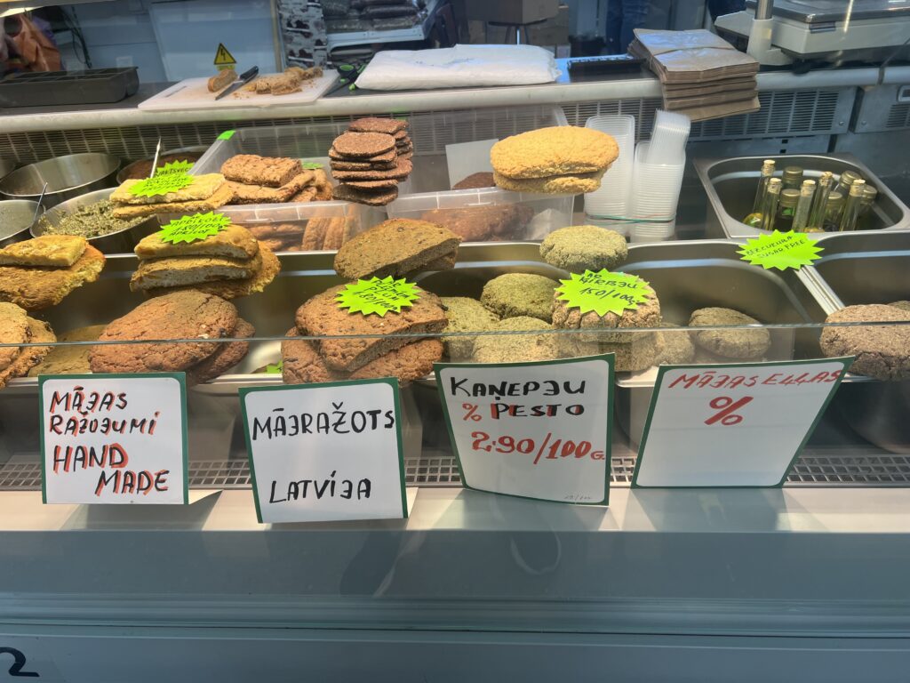 - Szproty po łotewsku – małe rybki serwowane na wiele sposobów, często z pieczywem lub jako przekąska,