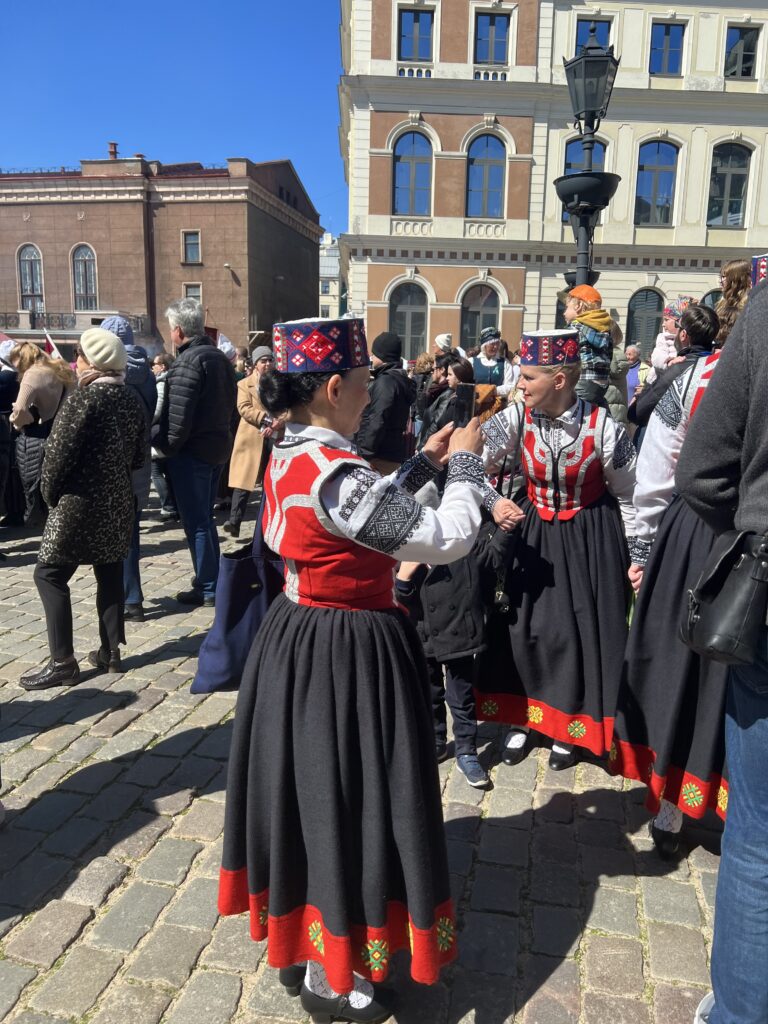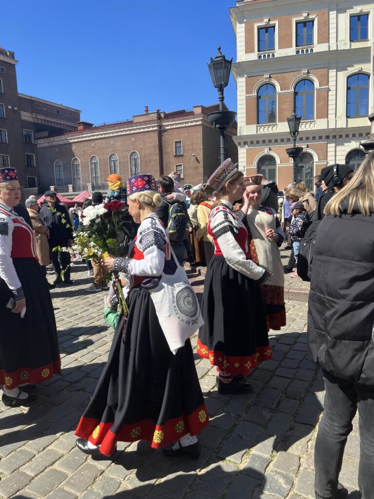 Na koniec, podczas drogi na lotnisko, miła niespodzianka — komunikacja tego dnia jest darmowa z okazji święta. 4 maja Łotysze świętują Deklarację Niepodległości Łotwy, co sprawia, że atmosfera w mieście jest niesamowicie radosna. Ulice ozdobione łotewskimi flagami, na rynku scena, ludzie w strojach ludowych, tradycyjne kapelę przygotowujące się do występów.