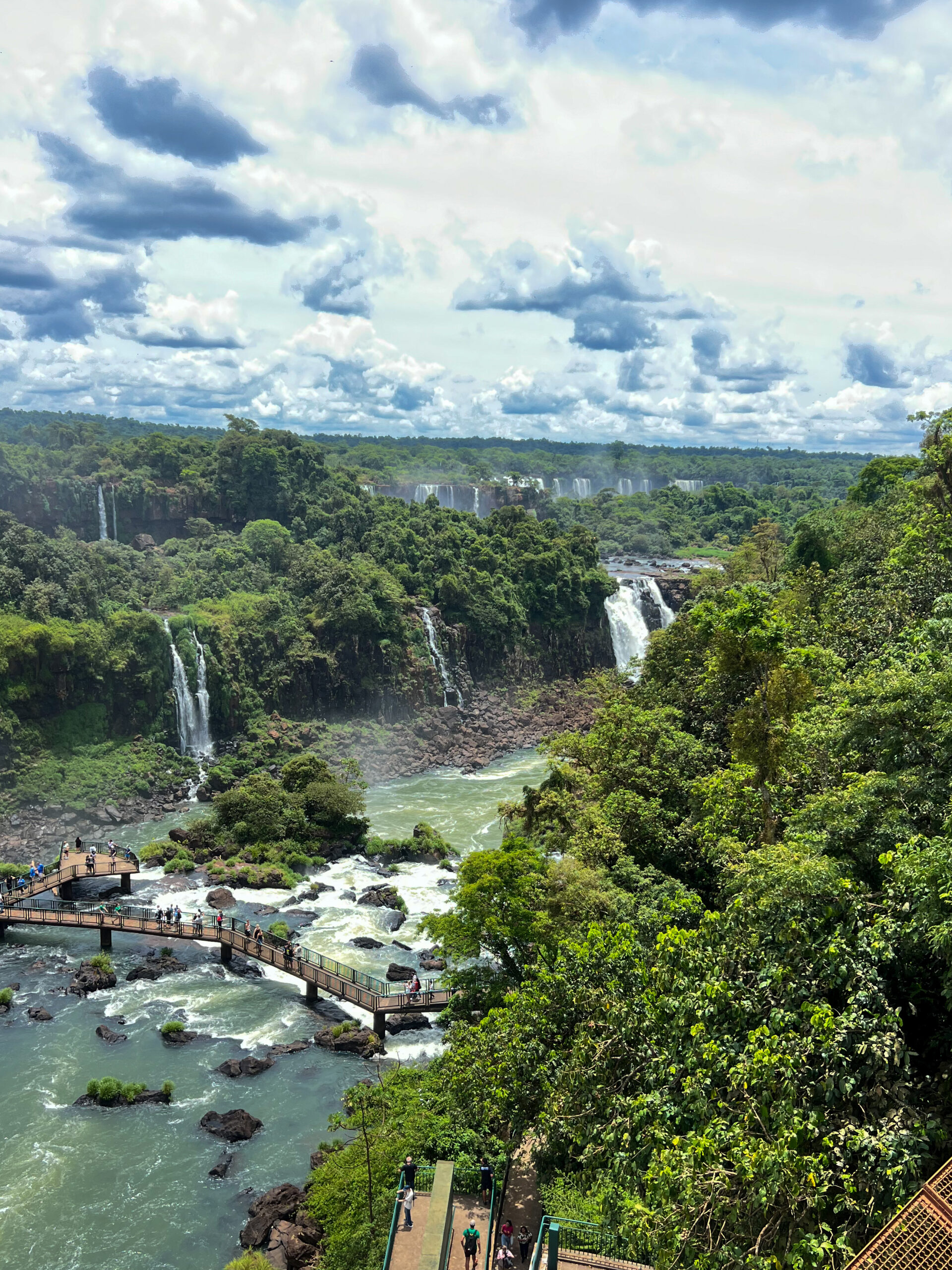 Na końcu ścieżki znajduje się kładka, z której można zajrzeć wprost do Gardzieli Diabła. Tu tłum turystów jest największy, ale widok rekompensuje każdą chwilę oczekiwania. Dla tych, którzy chcą spojrzeć na wodospady z góry, dostępna jest winda prowadząca na taras widokowy, skąd można podziwiać imponującą panoramę całego systemu kaskad i otaczającej je dżungli. To doświadczenie, które na długo pozostaje w pamięci — zarówno dzięki ogromowi wodospadów, jak i perfekcyjnie zaplanowanej infrastrukturze parku, pozwalającej cieszyć się każdym kadrem bez pośpiechu.