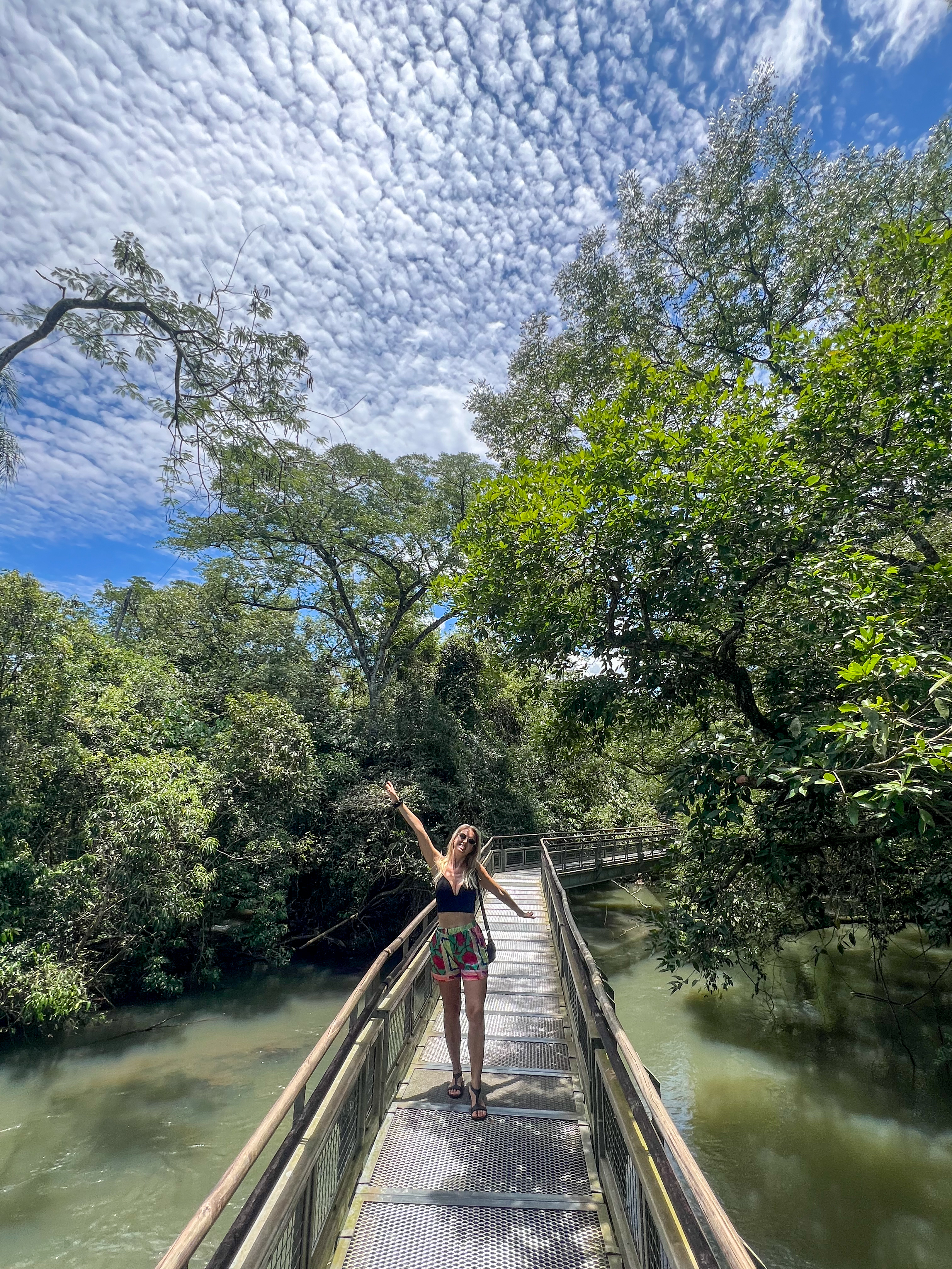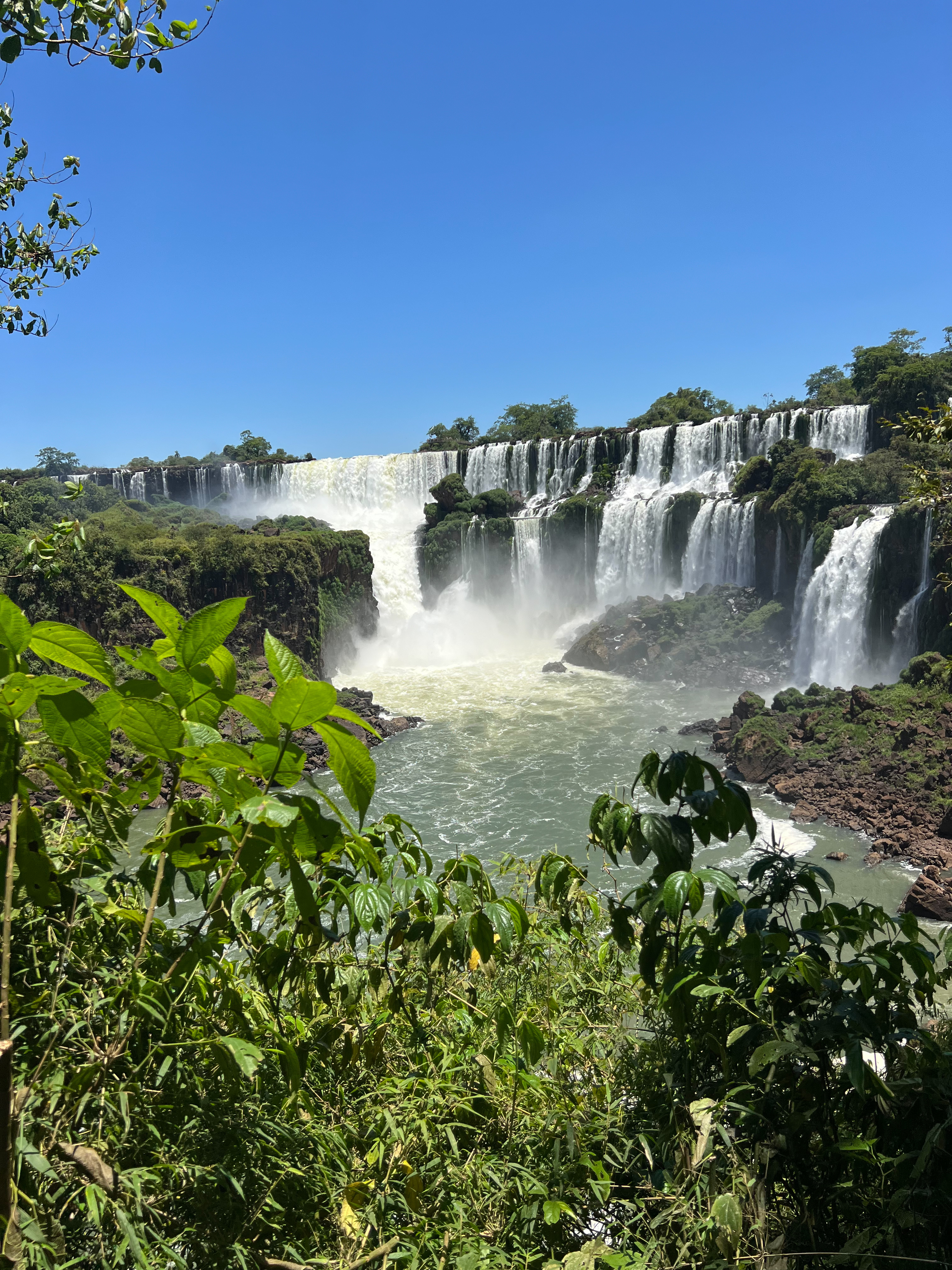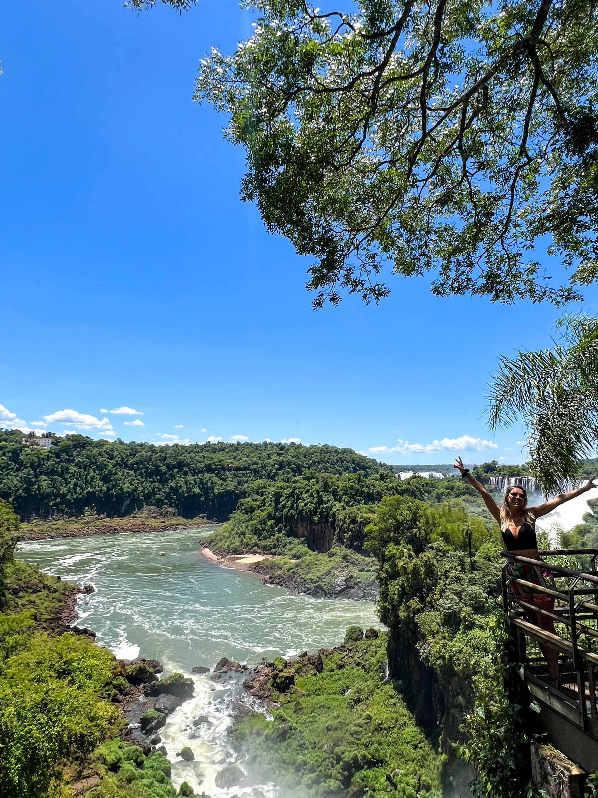 Trasa: 1,2 km kładką przez wyspy nad rozlewiskiem rzeki Iguaçu → główna platforma widokowa 82 m nad największą kaskadą świata (150 m szerokości).